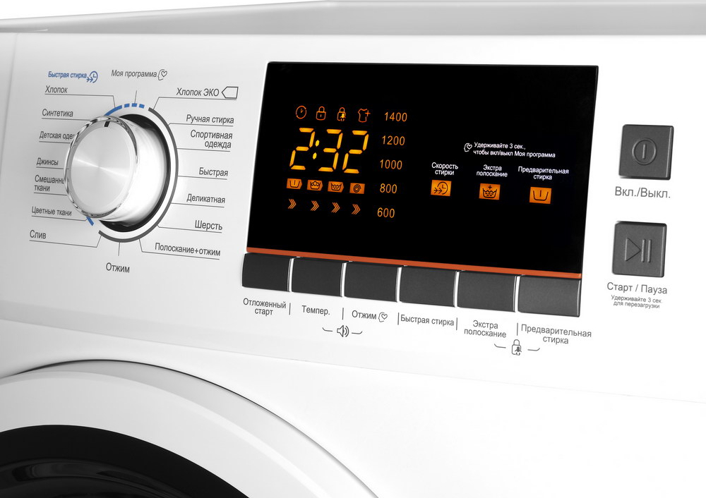 стирка деликатных тканей, экономичная стирка, стирка детской одежды, стирка джинсов, стирка спортивной одежды, программа стирки смешанных тканей, супер-полоскание, быстрая стирка, предварительная стирка