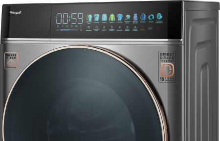 Программы: Смешанные ткани, Быстрая, Хлопок, Шерсть, Антибактериальная, Постельное белье, Детская одежда, Пуховик, Отжим, Очистка барабана