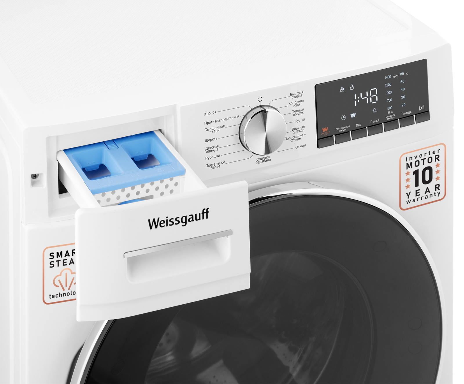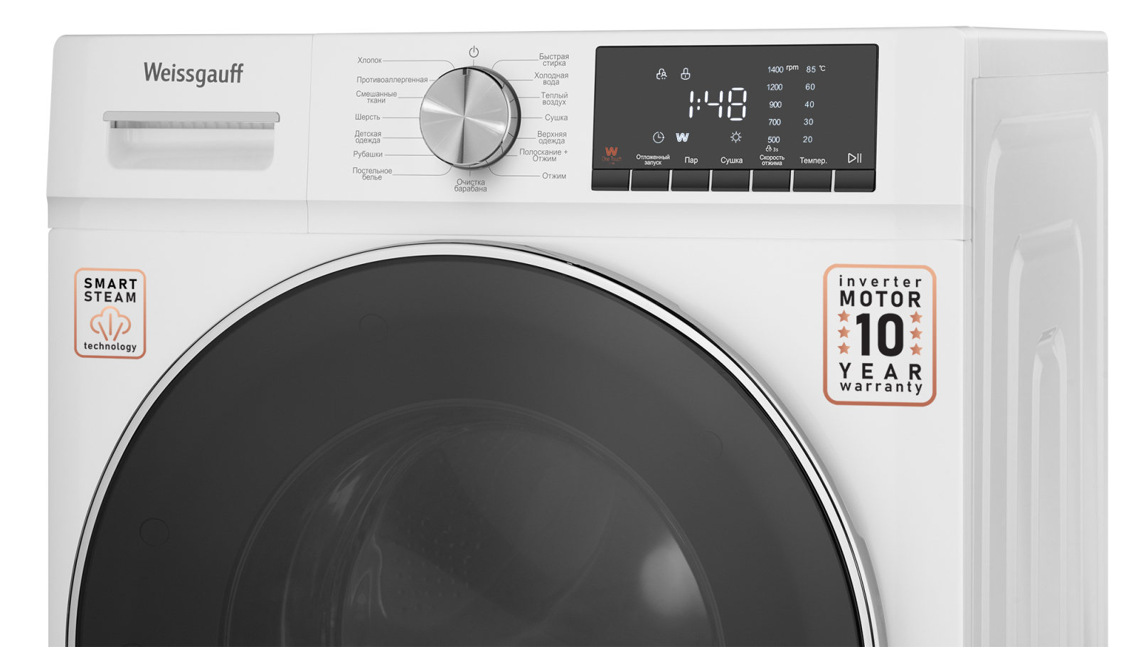 Особые программы : M-Smart (One Touch), Противоаллергенная, Теплый воздух, Очистка барабана