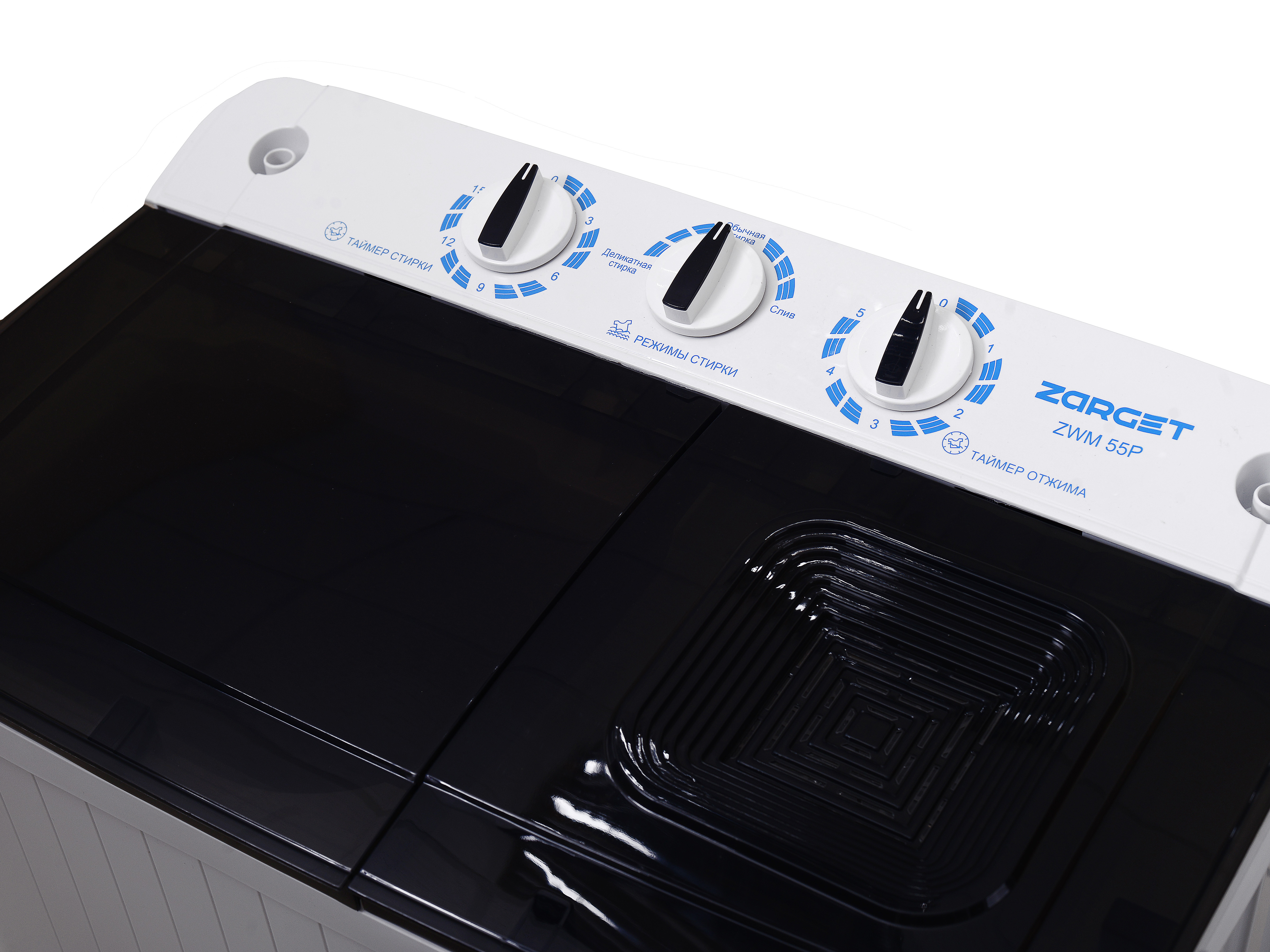 Полуавтоматическая стиральная машина ZARGET ZWM 55P имеет компактные размеры и небольшой вес, при необходимости ее можно быстро переставить. Корпус машины выполнен из прочного белого пластика. Панель управления представлена механическими переключателями, проста и понятна в использовании. Полуавтоматическая стиральная машина ZARGET ZWM 55P имеет компактные размеры и небольшой вес, при необходимости ее можно быстро переставить. Корпус машины выполнен из прочного белого пластика. Панель управления представлена механическими переключателями, проста и понятна в использовании. Стиральная машина характеризуется высоким качеством стирки и полоскания, а также скоростью отжима не менее 1350 об/мин. Максимальная загрузка белья - 5,5 кг , максимальная загрузка для отжима - 3,5 кг.