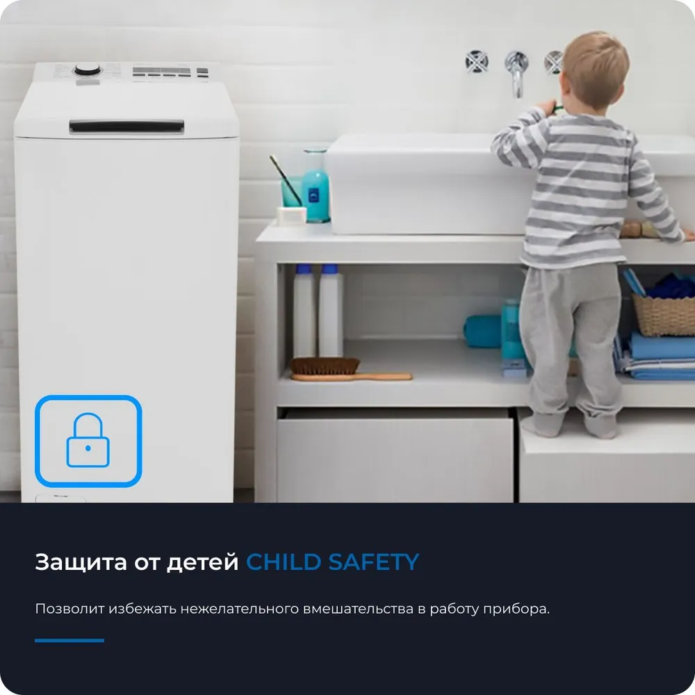Ее ширина всего 40 см, и она имеет вертикальную загрузку белья, что позволяет устанавливать прибор даже в малогабаритной квартире. Загрузка белья 8 кг и скорость отжима 1300 об./мин позволят постирать большой объём белья за один цикл, значительно сокращая время дальнейшей сушки. Также машина имеет 16 программ стирки, что позволяет выбрать оптимальный режим для различных типов тканей.
