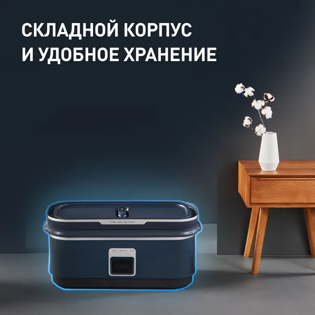 Благодаря компактному складному корпусу прибор удобно хранить и легко перемещать по дому.