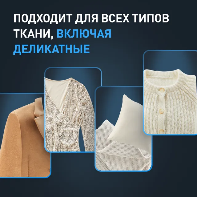 Care For You First обеспечивает уход за любым текстилем без риска прожечь или деформировать ткань, включая вещи с декоративными вставками и одежду из деликатной ткани — кашемира, шёлка, кружева.