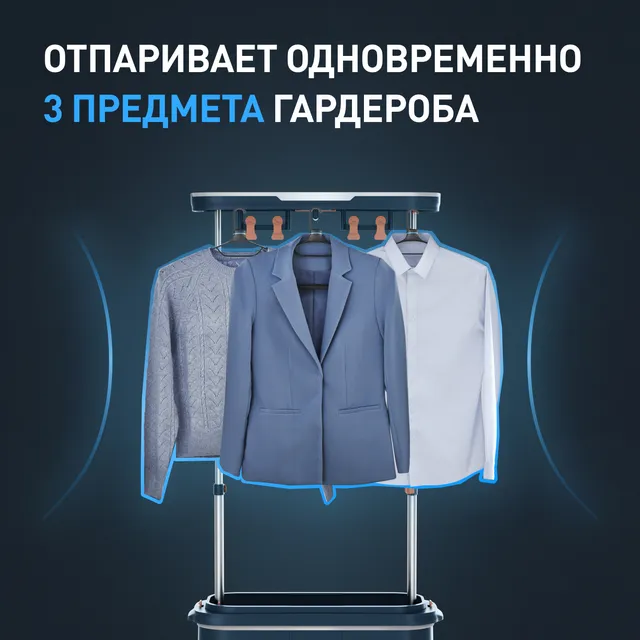 Вращающиеся на 360° вешалки с прорезиненными плечиками позволят надёжно зафиксировать даже тонкие бретельки, а специальные отверстия обеспечат правильную циркуляцию пара.