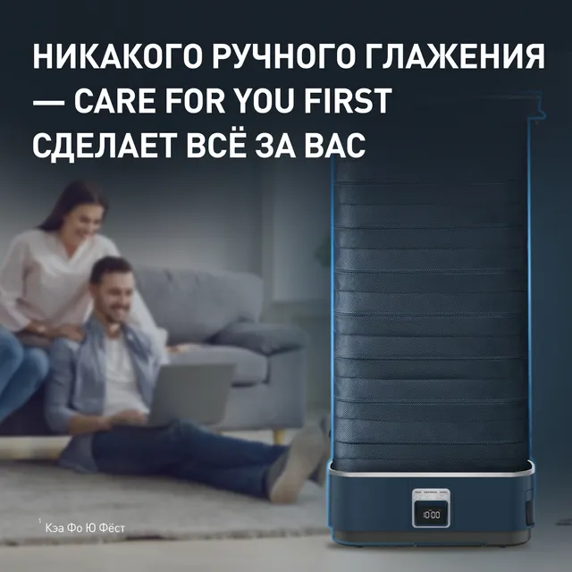 Делегируйте повседневные заботы инновационной системе Care For You First¹, созданной для профессионального ухода за одеждой без вашего участия. Просто загрузите вещи в устройство, включите систему и получите безупречный результат без лишних усилий!