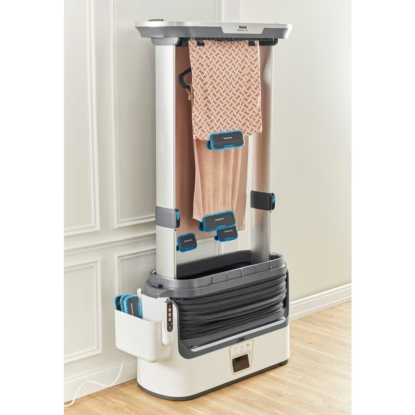Откройте для себя автоматическую паровую систему, которая вырабатывает пар для разглаживания складок, дезинфекции и сушки посредством простого процесса без помощи рук, который упрощает уход за одеждой.