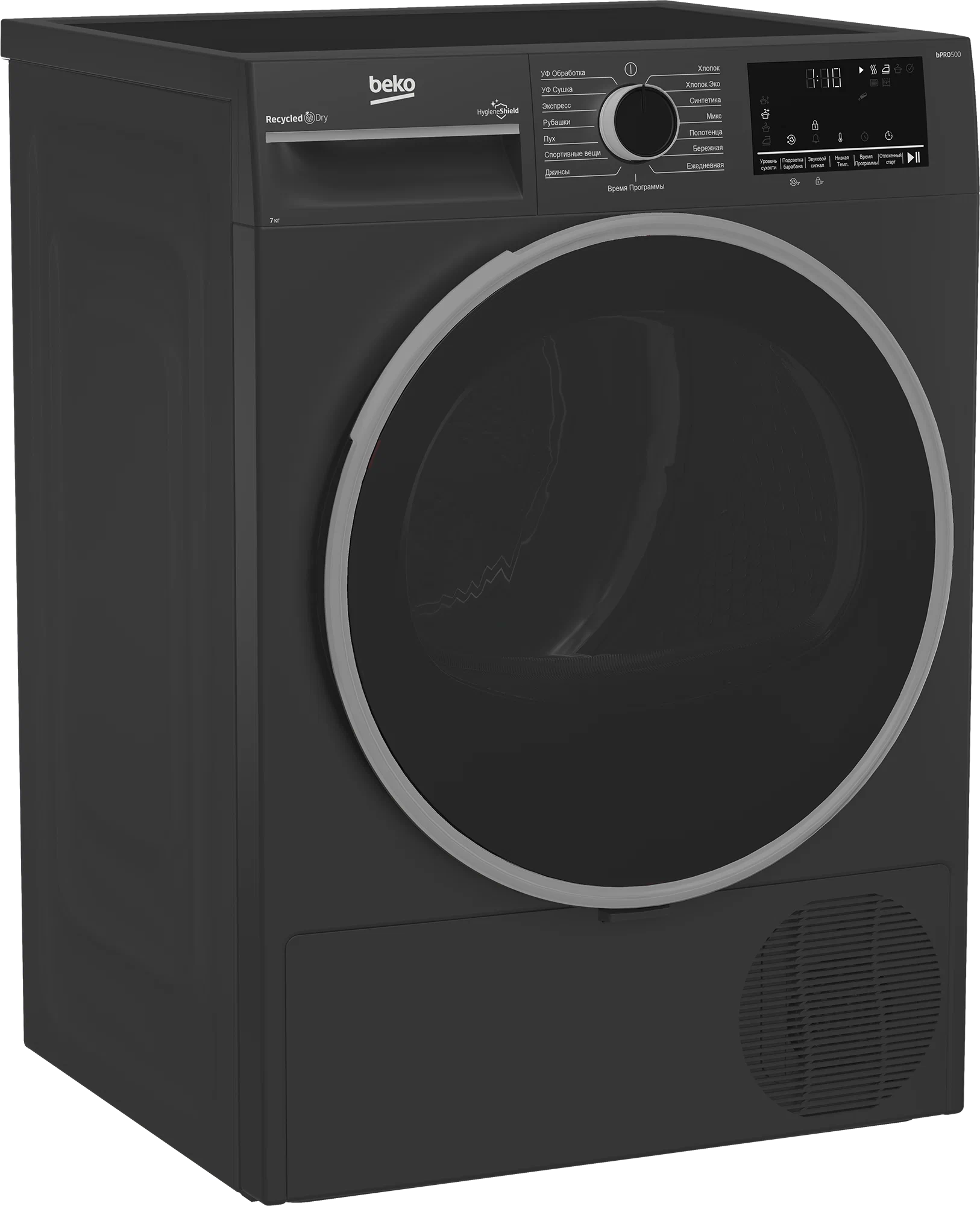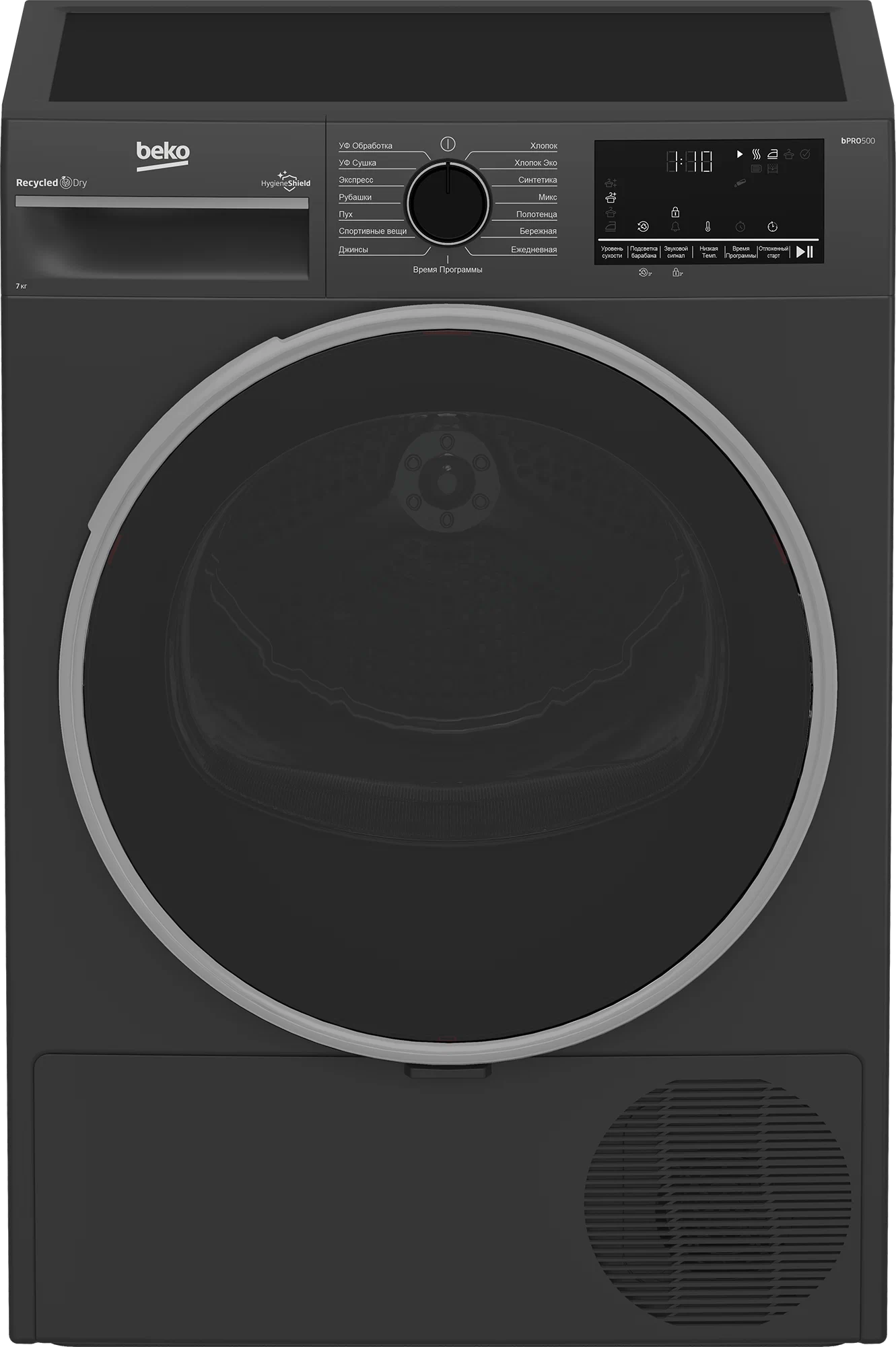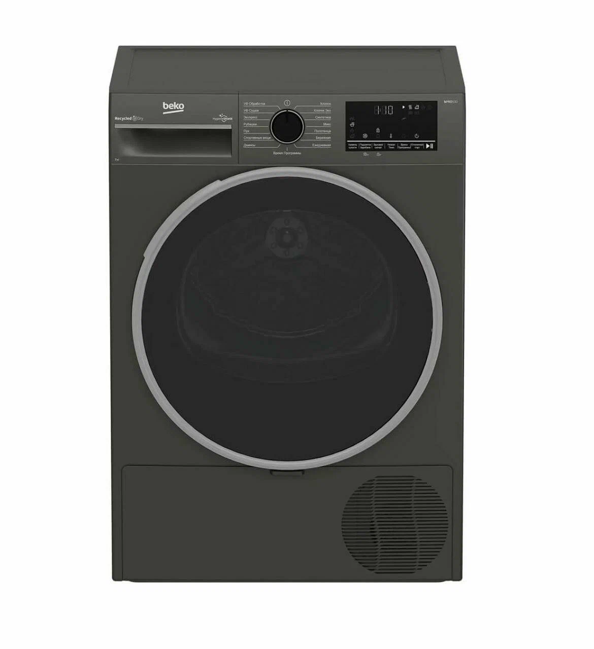 Сушильная машина с тепловым насосом. Макс. загрузка: 7кг; Защита от детей; Рельеф барабана Aquawave; Подсветка барабана; Отложенный старт на 0-24 ч. 15 программ, среди них: УФ сушка, УФ обработка; Размеры (ВхШхГ), см: 84,6x59,7x54,3. Вес: 39,5 кг; Цвет: антрацит, с тонированным люком
