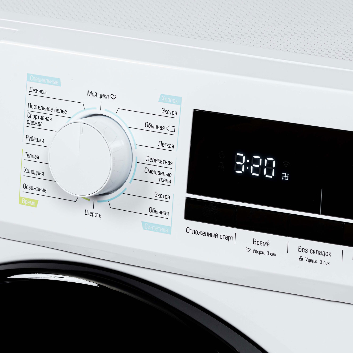 Программы: Хлопок (экстра, обычная, легкая), деликатная, смешанные ткани, синтетика (экстра, обычная), шерсть, теплая, холодная, освежение