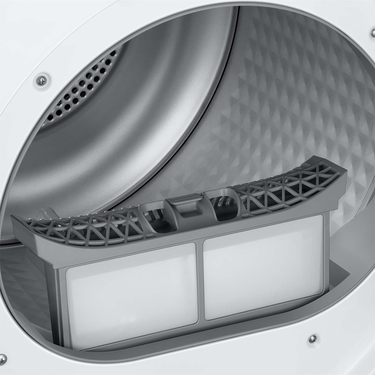 Барабан сушильной машины сделан из оцинкованной стали и рассчитан максимум на 9 кг белья. Тип сушки — конденсационный. Специальная технология HeatPump и рифленая поверхность барабана Diamond Drum обеспечивают эффективность работы сушильной машины с минимальными затратами времени и электроэнергии.