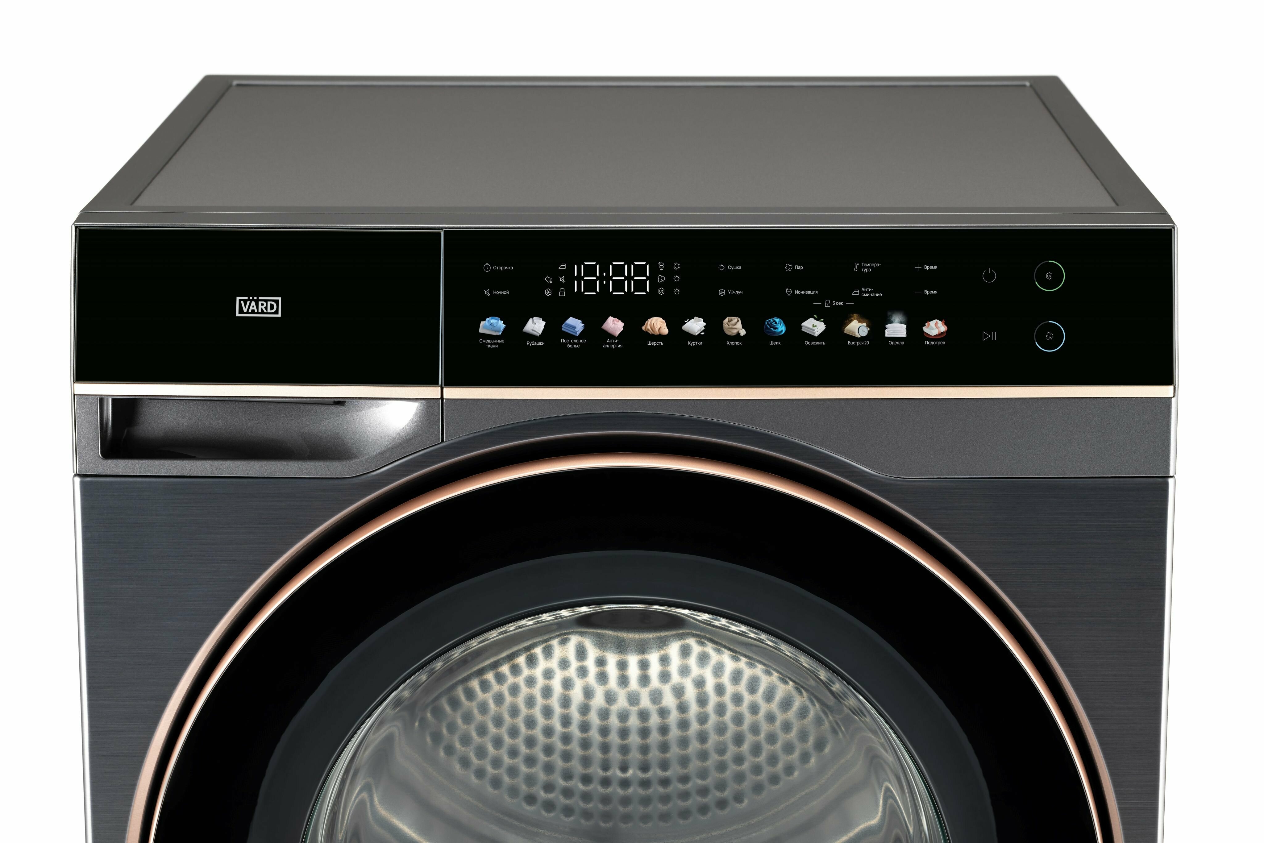 UV-луч — функция сушильной машины, которая активируется в конце цикла сушки. Проходя через структуру ткани, ультрафиолет меняет структуру потенциально опасных микроорганизмов и предотвращает их дальнейшее размножение.