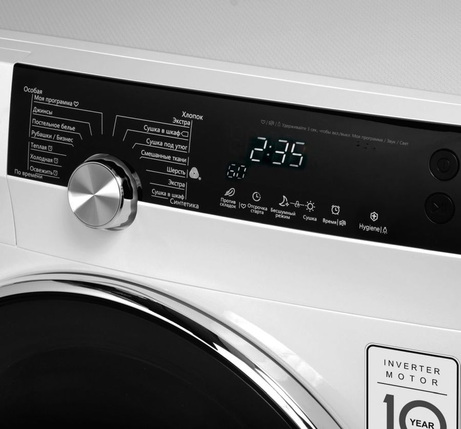Программы: Хлопок – Экстра, Хлопок – Сушка в шкаф, Хлопок – Сушка под утюг, Синтетика Экстра, Синтетика – Сушка в шкаф, Моя программа, Шерсть, Смешанные ткани, Особая – Рубашка, Особая – Джинсы, Особая – Постельное белье, По времени – Освежить, По времени – Холодная, По времени Теплая