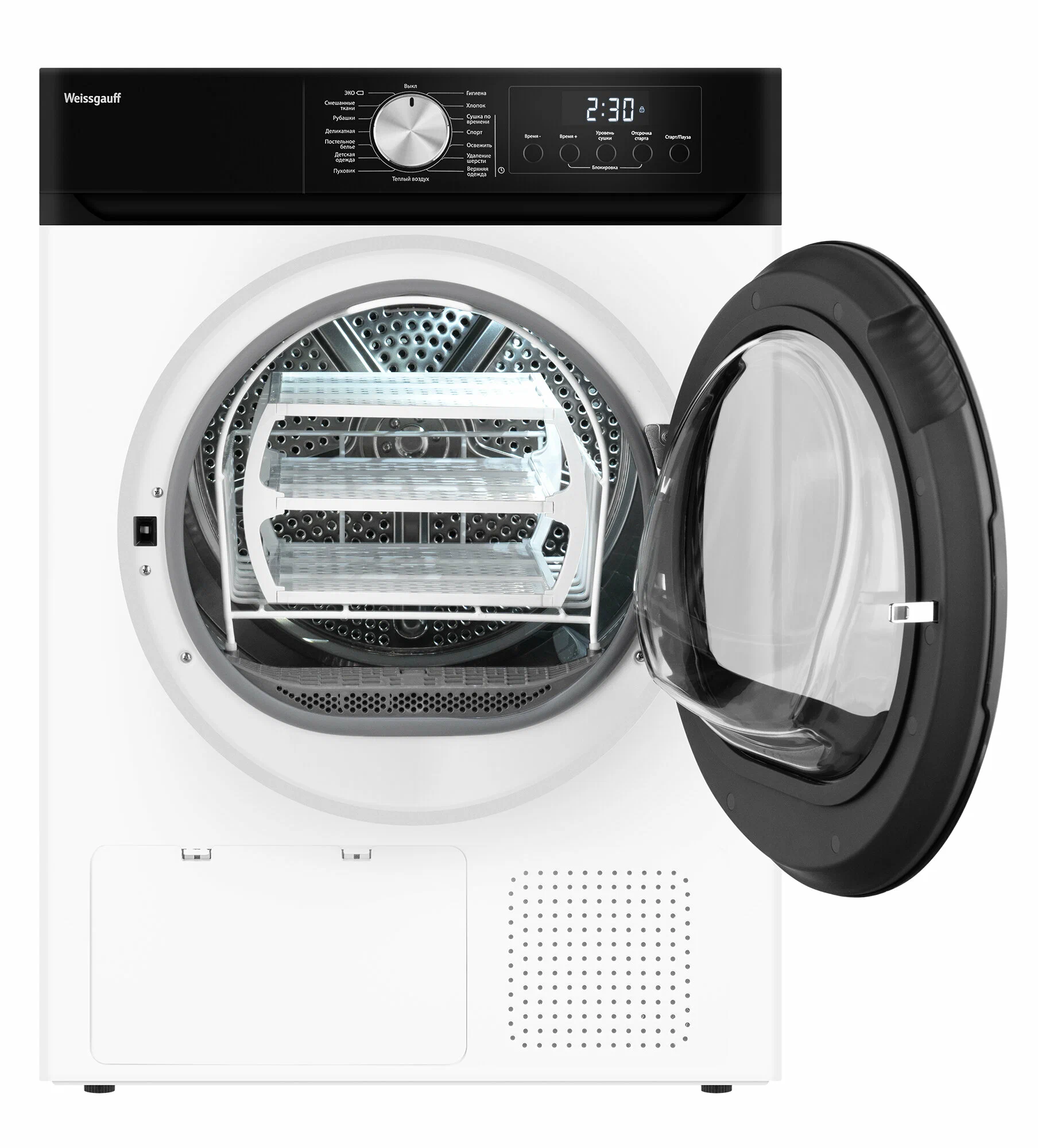 ворсовый фильтр, выбор скорости отжима, выбор температуры стирки, контроль влажности, отложенный старт, предотвращение сминания, реверсивное вращение барабана, сбор конденсата, сигнал окончания стирки