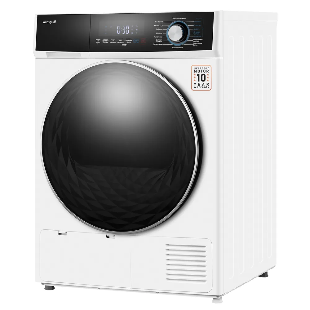 Функциональные особенности: Контроль остаточной влажности, Звуковой сигнал, Отсрочка запуска