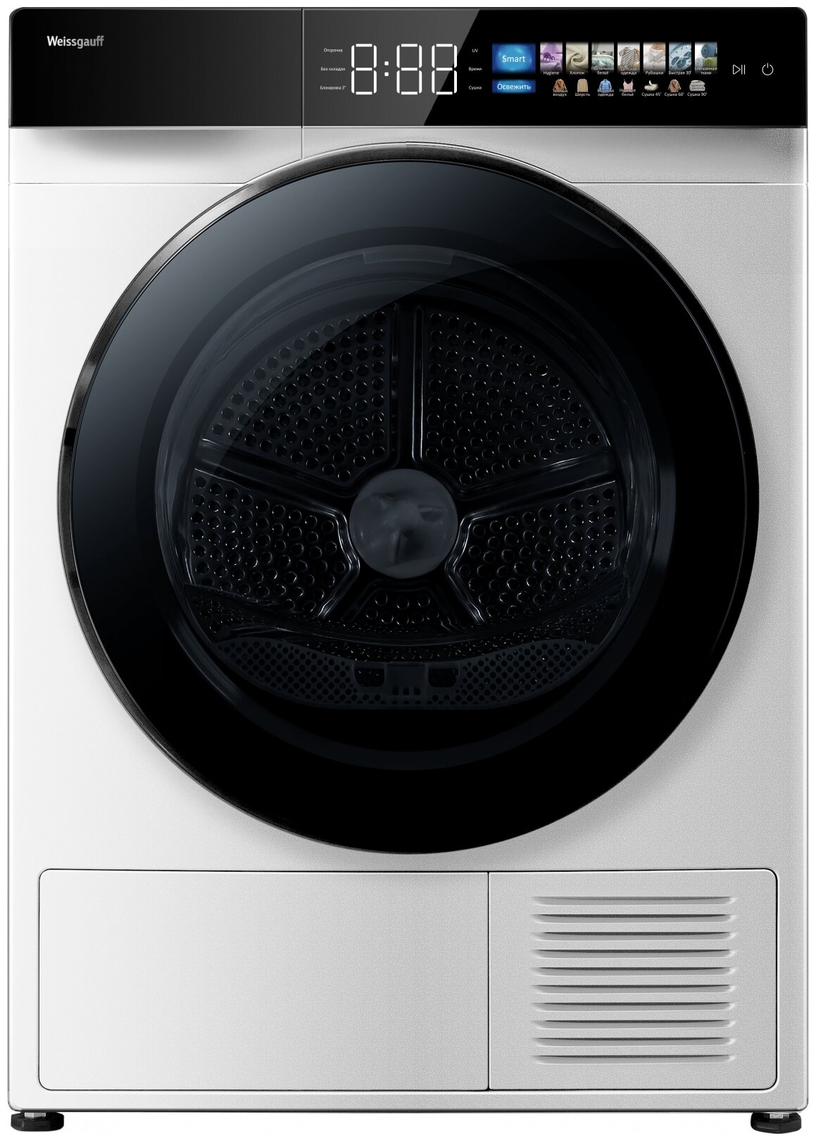 диаметр дверцы - 500 мм; диаметр люка - 370 мм; угол открытия дверцы - 170 градусов; тип сушки - Heat Pump; тип дисплея- SMART SCREEN - увеличенный цветной дисплей; работа без подключения к канализации -есть, ультрафиолет - есть; тепловой насос -есть; инверторный двигатель - есть;длина кабеля - 1,5 м; тип кабеля - евровилка