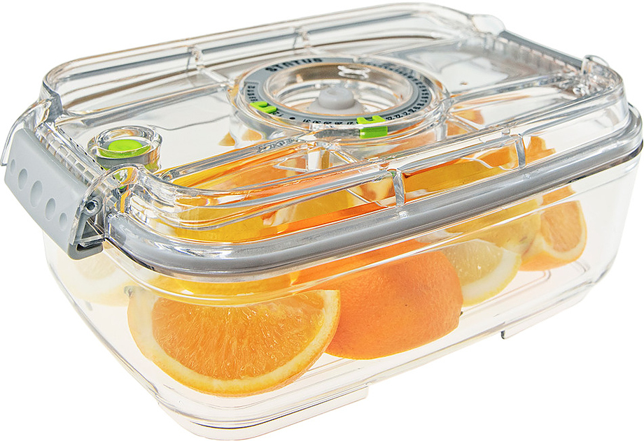Вакуумный контейнер Status VAC-REC-14 Full tritan используется совместно с вакуумными упаковщиками, поддерживающими подключение вакуумного шланга, или с ручным насосом для упаковки продуктов в частных домах и квартирах для последующего их хранения. Модель имеет прямоугольную форму, оснащена индикаторами даты (месяц и число) и вакуума на крышке. Изделие выполнено из тритана.