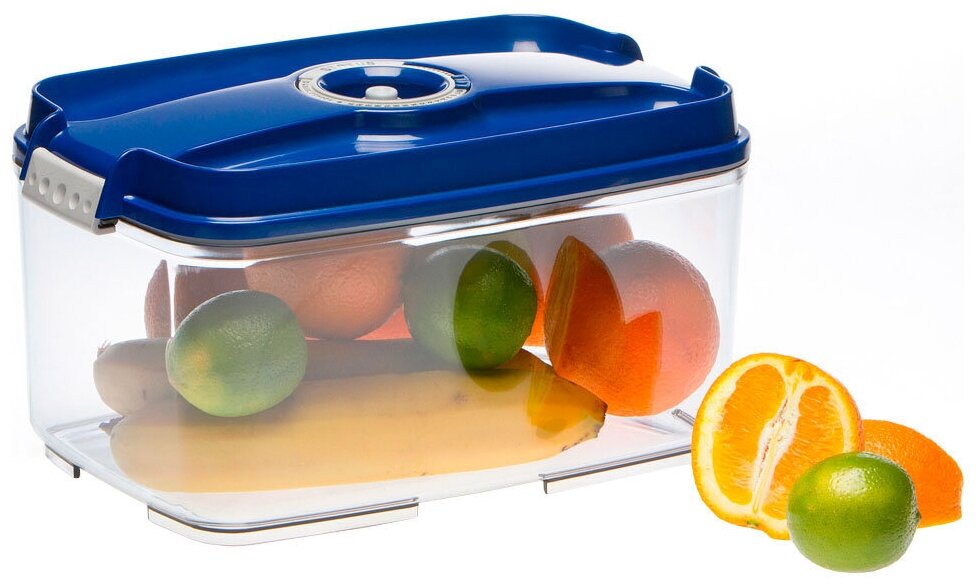 Контейнер для хранения продуктов в вакууме Прочный хрустально-прозрачный Tritan™ BPA-Free Прямоугольная форма Объем 4,5 литра Индикатор даты (месяц, число) Размер: 29,5 x 18,5 x 15,5 см
