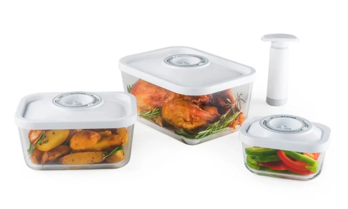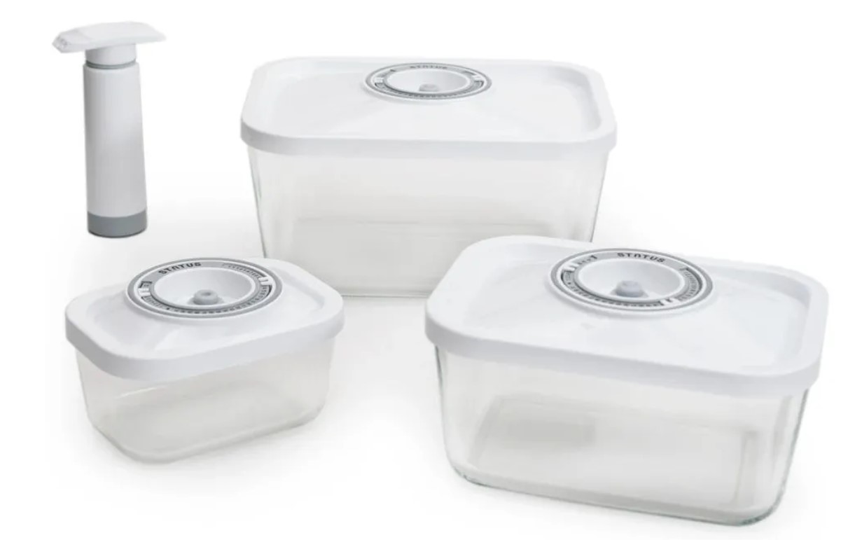Набор вакуумных контейнеров Status VAC-Glass-Set White используется для компактного хранения продуктов, позволяя экономить пространство. Благодаря использованию вакуумных контейнеров, продукты не подвергаются внешнему воздействию и срок хранения значительно увеличивается. Продукты сохраняют свои вкусовые качества и аромат, а запахи в холодильнике не перемешиваются.