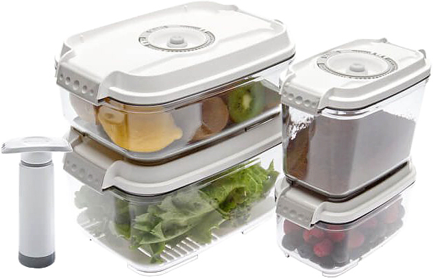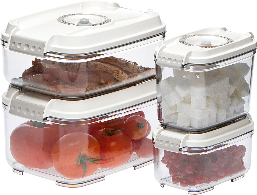 Набор вакуумных контейнеров Status VAC-REC-Smaller используется совместно с вакуумными упаковщиками, поддерживающими подключение вакуумного шланга, или с ручным насосом для упаковки продуктов в частных домах и квартирах для последующего их хранения. В набор входят 4 контейнера прямоугольной формы разных размеров с крышками и ручной насос. Контейнеры выполнены из тритана, не содержащего бисфенол А, крышки - из ABS-пластика.