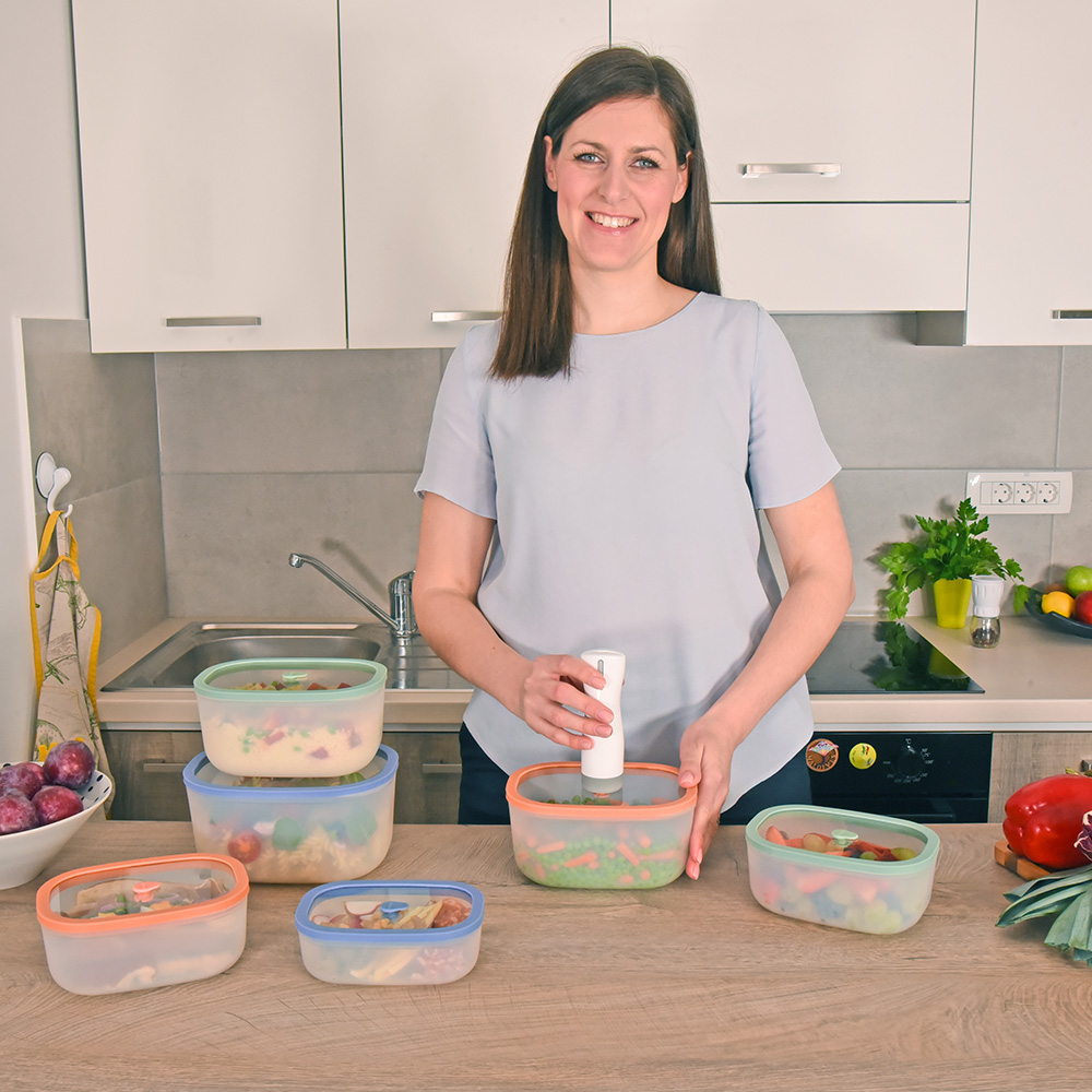 Благодаря использованию вакуумных контейнеров, продукты не подвергаются воздействию кислорода и срок их хранения значительно увеличивается. Продукты сохраняют свои вкусовые качества и аромат, а запахи в холодильнике не смешиваются.