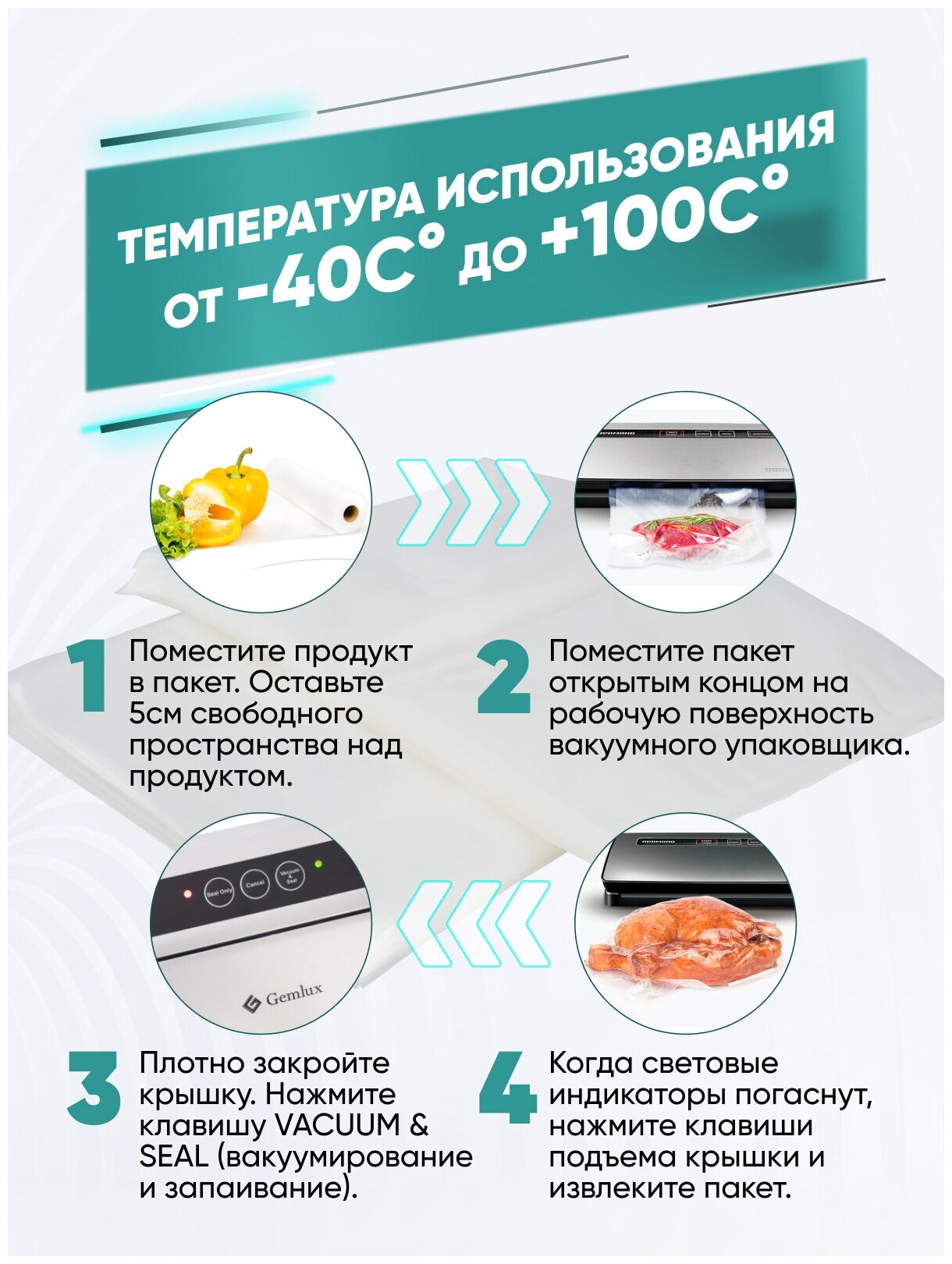 Вакуумные пакеты Gemlux GL-VB2230-50P предназначены для использования с вакуумными упаковочными машинами Gemlux.