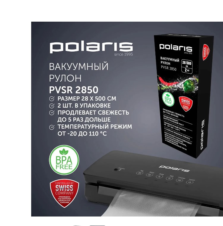 Продлевает свежесть до 5 раз дольше. Предотвращает бактериальный рост. Температурный режим от - 20?С до +110С. 7 слойная пищевая пленка. Вакуумные рулоны подходят для использования в морозильной камере, холодильнике и микроволновой печи. 2 шт
