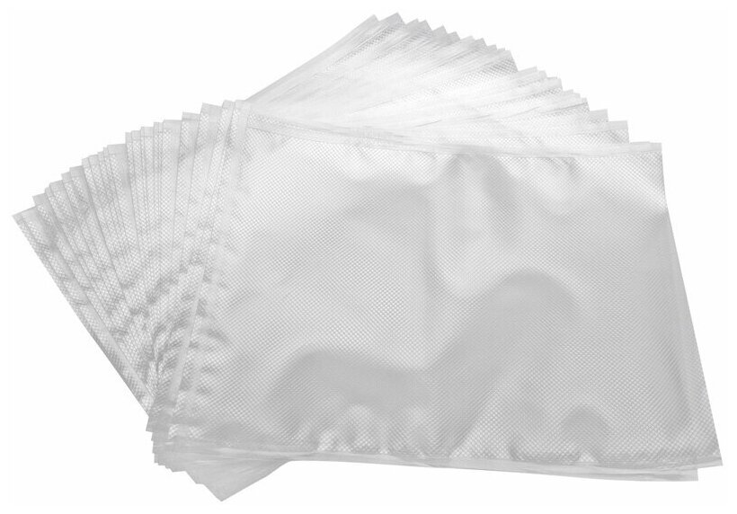 Специальная ребристая поверхность толщиной 0,2 мм способствует качественному запаиванию вакуумным упаковщиком краёв пакета, независимо от того, сколько раз они были использованы. Специально подобранная форма ребристого профиля позволяет вакууматору легко и эффективно извлекать воздух.