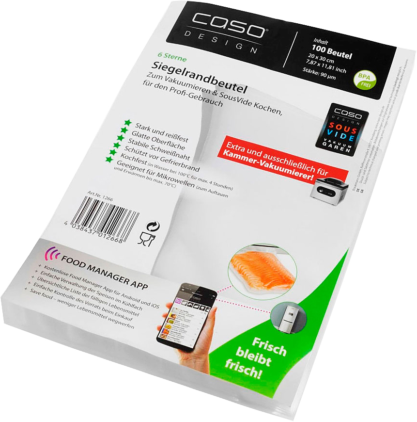 Вакуумные пакеты CASO 6 Sterne 20*30 используется совместно только с камерными упаковщиками для упаковки продуктов в частных домах и квартирах для последующего их хранения или приготовления по технологии Sous Vide. Изделия выполнены из качественных пищевых полимеров, не содержащих бисфенол А.