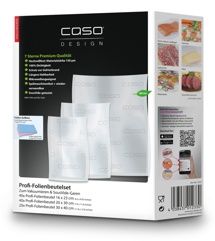 Подходит для всех вакуумных упаковщиков CASO Design и марок FreshVAC, WMF, Rommelsbacher, LAICA, Gastroback, Foodsaver, Solis, Steba, Lava UVM.