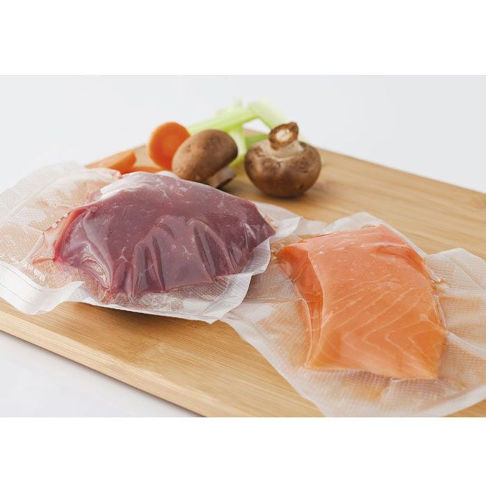 Ребристая внутренняя поверхность для оптимального вакуумирования.Высокая прочность пакета допускает замораживание, использование в СВЧ печи, готовку по технологии Sous-Vide.