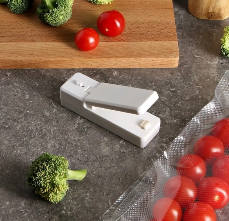 Портативный запайщик пакетов – это незаменимая вещь в быту или на даче. Используйте его, чтобы запаять специальные пакеты для вакуумирования или обычный пакет. Запайщик быстро нагревает пластик и образует воздухонепроницаемые швы. Так вы сохраните свежесть продуктов и защитите холодильник и кухонные ящики от грязи.