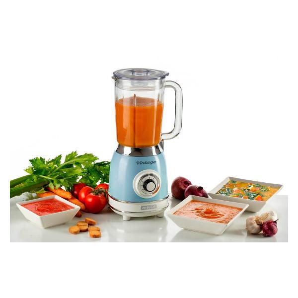 Ariete 583 создан для тех, кто стремится к здоровому образу жизни или любитель свежих смузи и вкусных шейков. Стильный винтажный дизайн сочетается с отличной производительностью и функциональностью. Мгновенно готовьте фруктовые и йогуртовые напитки на завтрак и питательные супы на обед. Эффективное смешивание различных по текстуре ингредиентов. Скорость работы стационарного блендера также можно изменять по желанию.