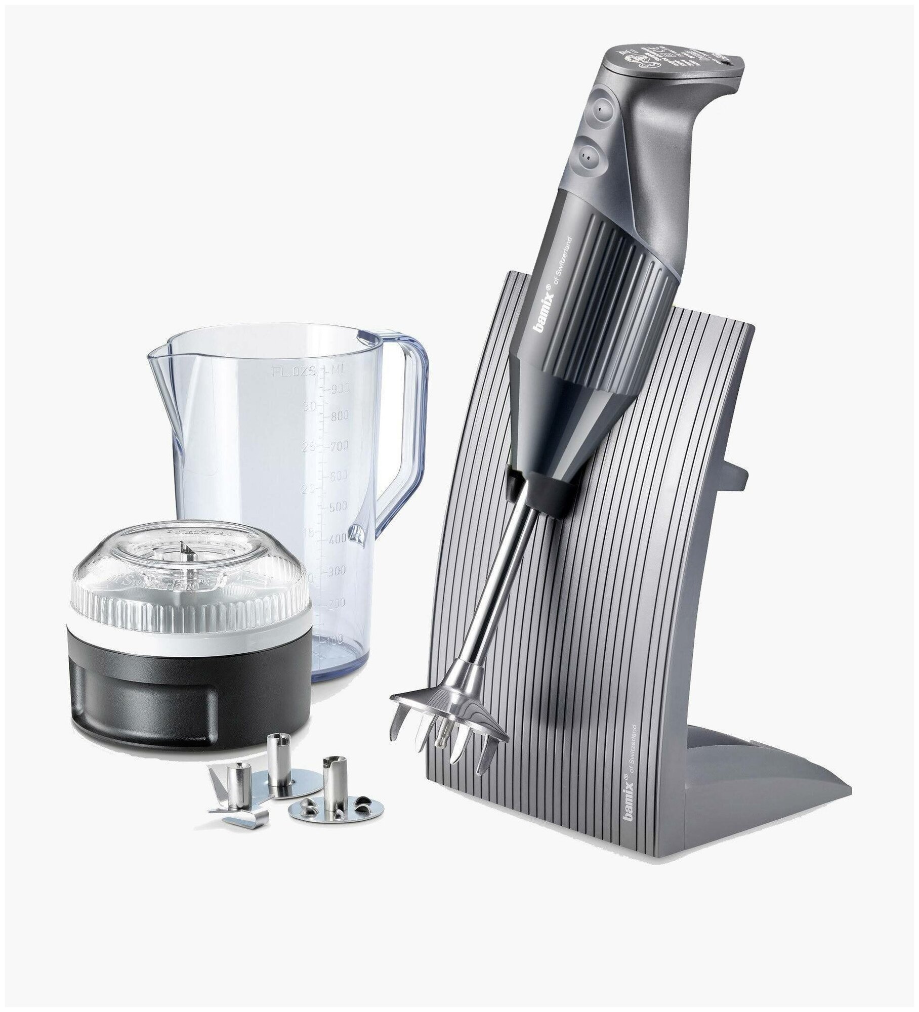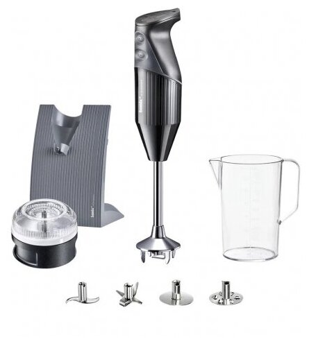 многофункциональная насадка; насадка для взбивания; насадка для перемешивания; процессор с растирочным диском; подставка для хранения; двойная изоляция; 2 безопасных выкючателя с мягкой окантовкой