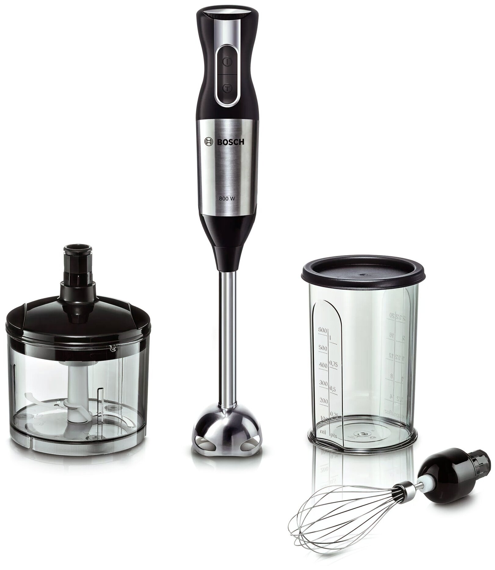 "Quattro Blade" технология: инновационный нож с 4 острыми лезвиями; низкий уровень шума и вибрации при работе мотора; удобная эргономичная ручка с мягким покрытием Soft-touch и большими кнопками; кнопка для отсоединения ножки блендера; аксессуары можно мыть в посудомоечной машине; измельчитель с острым ножом из закаленной нержавеющей стали; с крышкой для хранения продуктов в холодильнике; венчик из нержавеющей стали