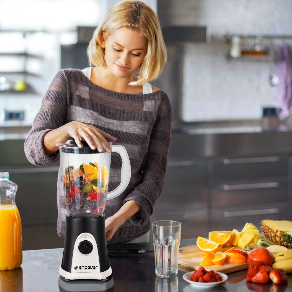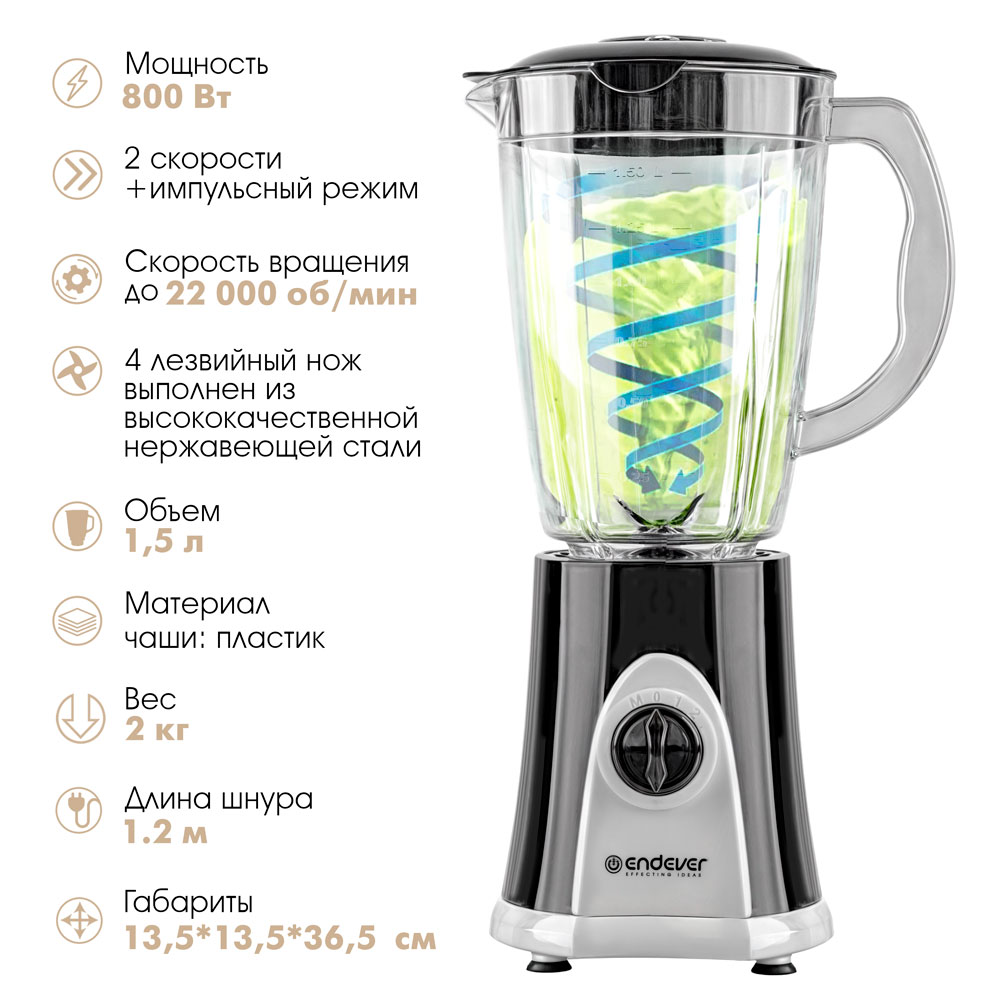 Эргономичный дизайн, Низкий уровень шума и вибрации, Защита от перегрева, Нож с четырьмя лезвиями, Материал ножей - нержавеющая сталь, Скорость вращения до 22 000 об/мин, Две скорости + импульсный режим, Плавная регулировка скорости, В комплекте чаша-измельчитель 600 мл, фитнес бутылка 600 мл, насадка-измельчитель 450 мл и насадка-кофемолка, вместимостью до 100 грамм кофейных зерен, для перемалывания зёрен кофе, приготовления небольших порций соусов, дробления орехов, измельчения специй и овощей, приготовления смузи и коктелей, Защита от случайного включения без чаши, Нескользящие ножки