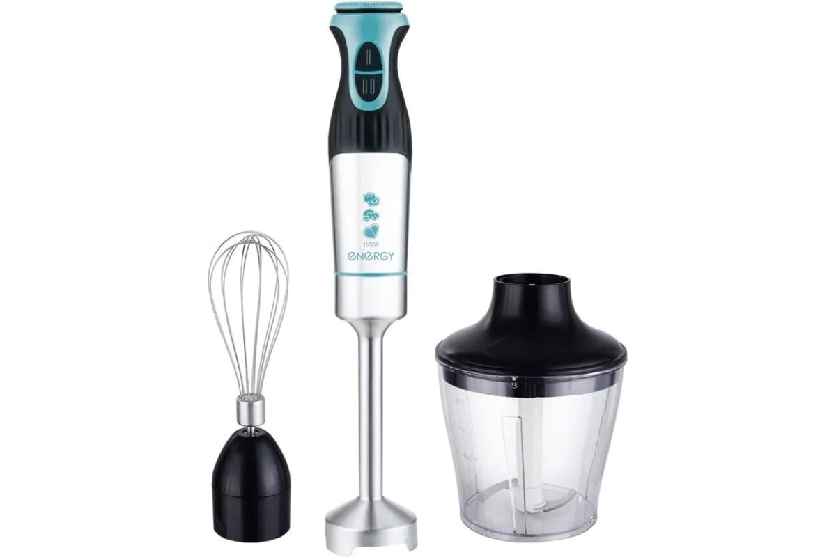 Погружной блендер ENERGY en-139, 1500 Вт, 2 скорости, измельчитель, венчик 105259 предназначен для измельчения продуктов, приготовления коктейлей и пюре.