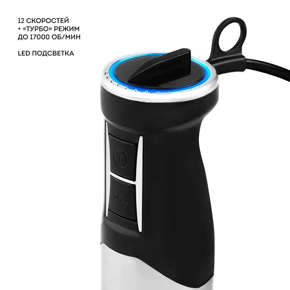 Конструктивные особенности измельчителей продуктов: LED индикатор работы, Защитная крышка, Кнопка для быстрого снятия насадок, Петля для подвешивания, Прорезиненные ножки