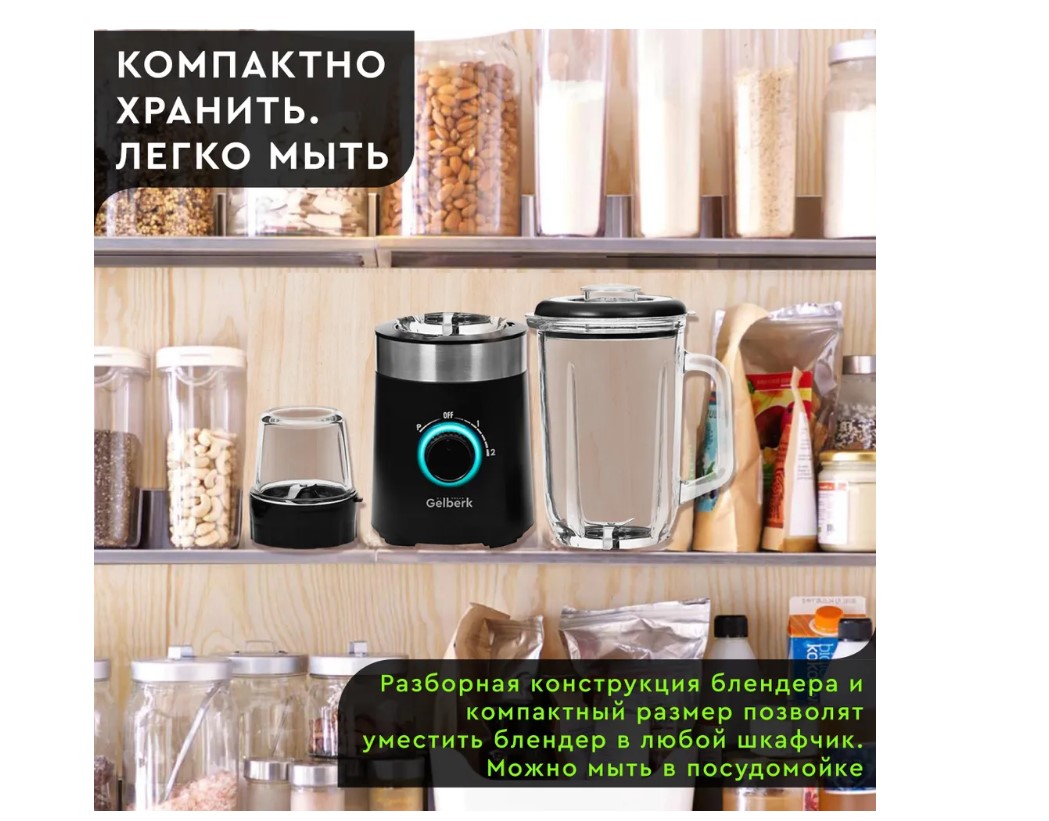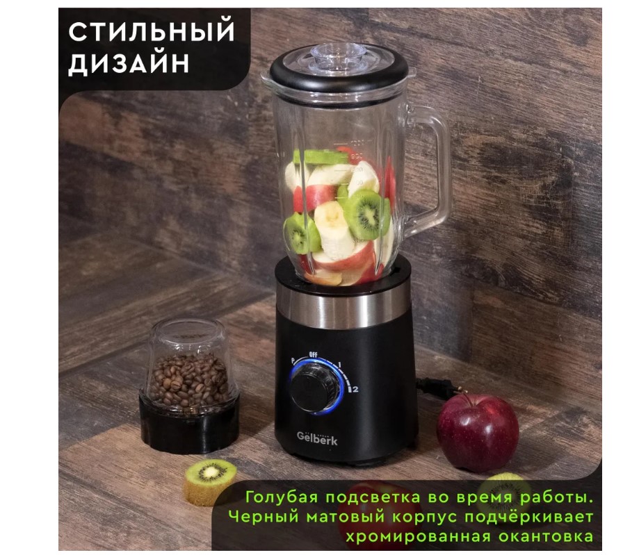 Каждая модель блендеров проходит тщательное тестирование нашими специалистами, и только лучшие образцы попадают в продажу под брендом Gelberk! Объем кувшина: 1,2 л Мощность: 700 Вт Благодаря эргономичному дизайну и качественным материалам, мы добавляем удобство и комфорт в вашу жизнь, что является главным направлением нашего бренда!