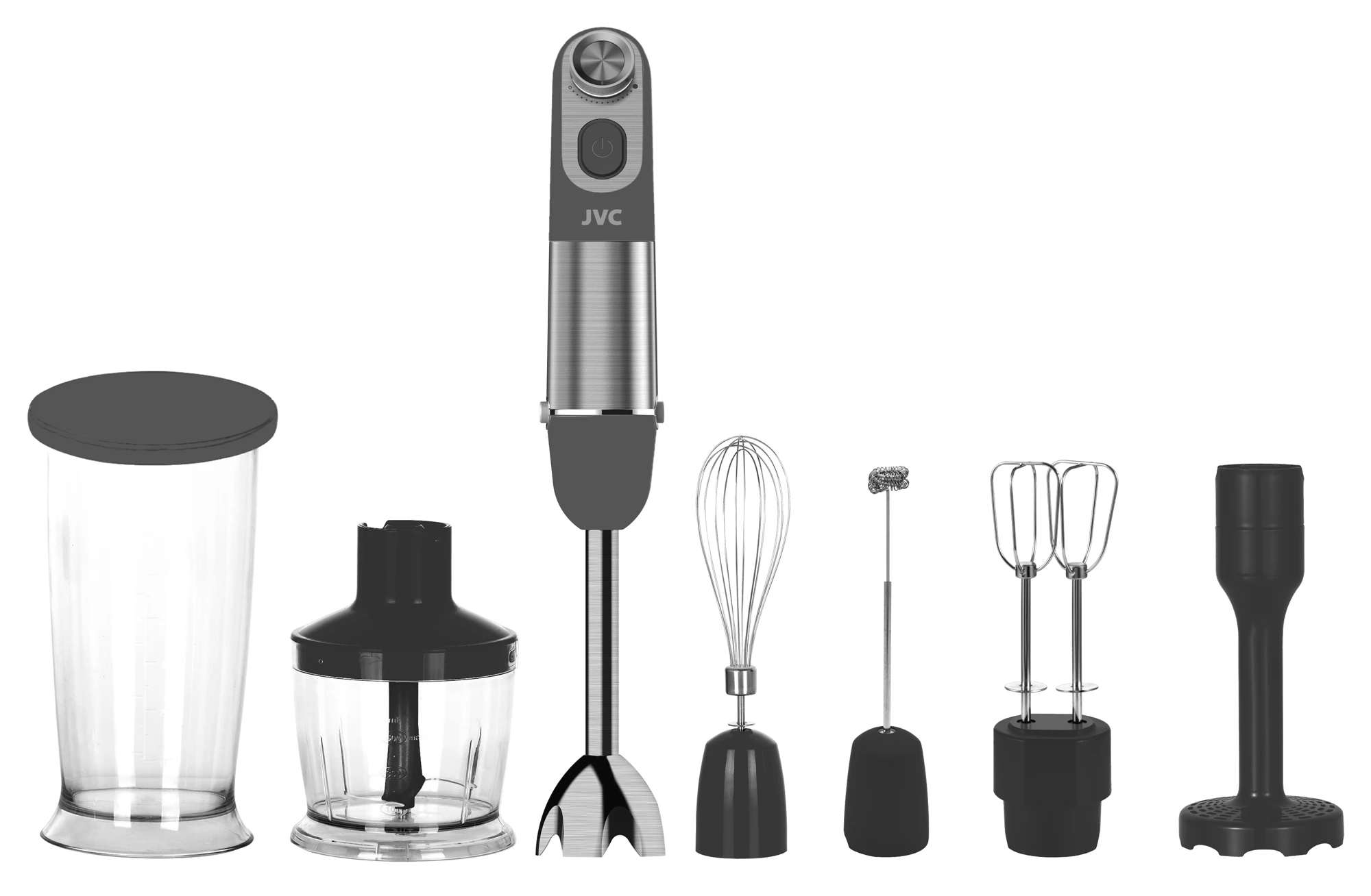 капучинатор, мерный стакан, насадка-блендер, насадка-венчик, насадка-измельчитель, насадка-миксер, насадка для пюре