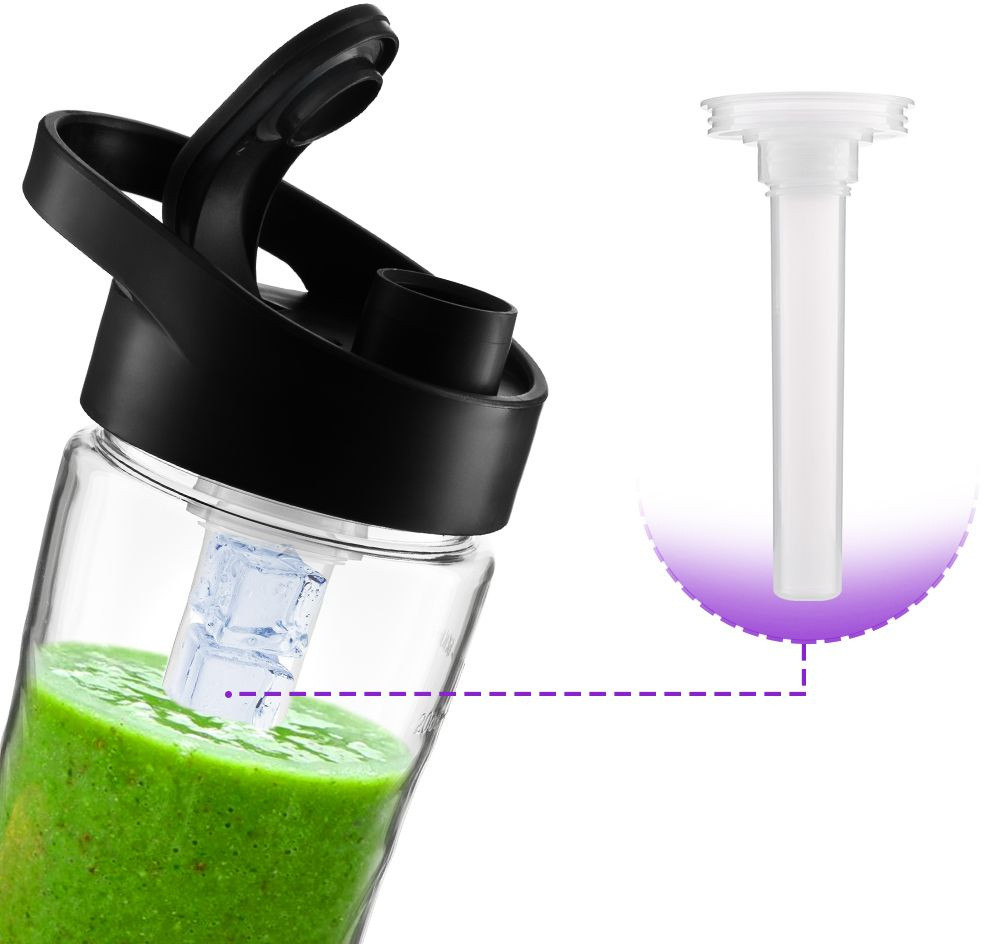 Особенности: Для того, чтобы поддерживать напитки прохладными, в комплекте к бутылке Shake&Take идёт специальная колба для охлаждения. Заморозьте колбу вместе с жидкостью, а после приготовления смузи установите её в бутылку. Теперь напитки будут всегда освежающими!
