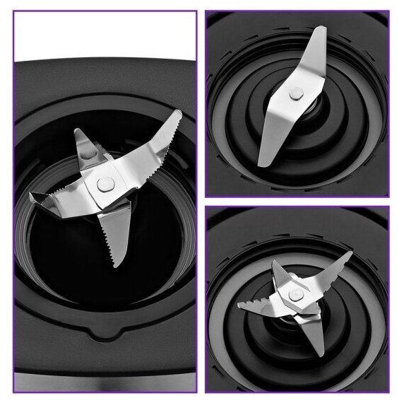 Блендер с лёгкостью справится с приготовлением пюре, смешиванием разных продуктов и колкой льда. Устройство очень удобно в использовании: в отличие от погружного блендера он исключает возможность брызг при работе смешивание происходит в закрытой чаше.