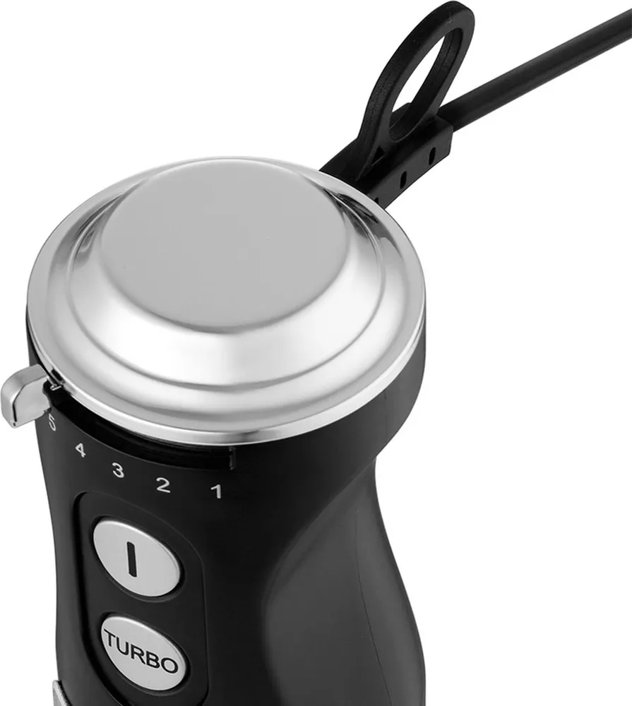 Блендер оснащен пятью скоростями работы с турборежимом и надежным двигателем, рассчитанным на длительный срок эксплуатации. Нож блендера выполнен из нержавеющей стали, что обеспечивает долгий срок службы. Насадка-блендер легко снимается с моторного блока, поэтому уход за устройством не составит труда.