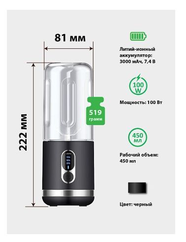 6 ножей из нержавеющей стали; аккумулятор: литий-ионный,3000 мАч,7,4 В; разъем питания: USB, Type-C