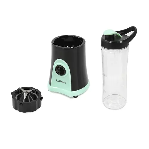 Компактный блендер с переносной спортивной бутылкой объемом 600 мл подходит для приготовления смузи, коктейлей, спортивного питания.