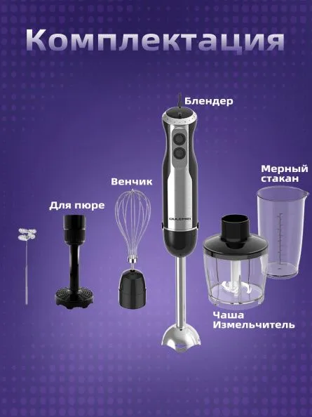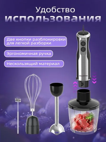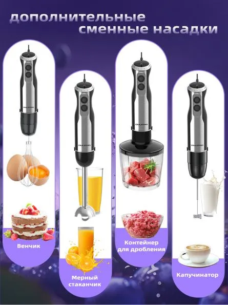 Вид насадки: Мясорубка, Венчик, Нож для взбивания, Насадка-блендер, Насадка-миксер