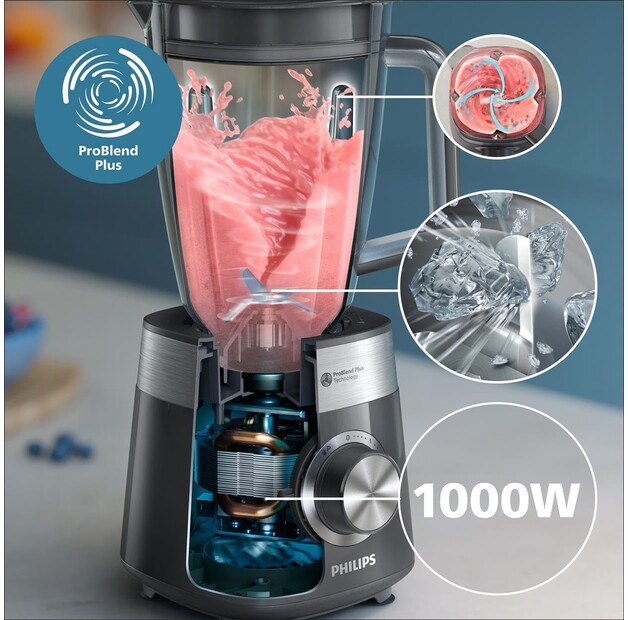 4 лезвия, крышка с отверстием для заправки, съемные части можно мыть в посудомоечной машине