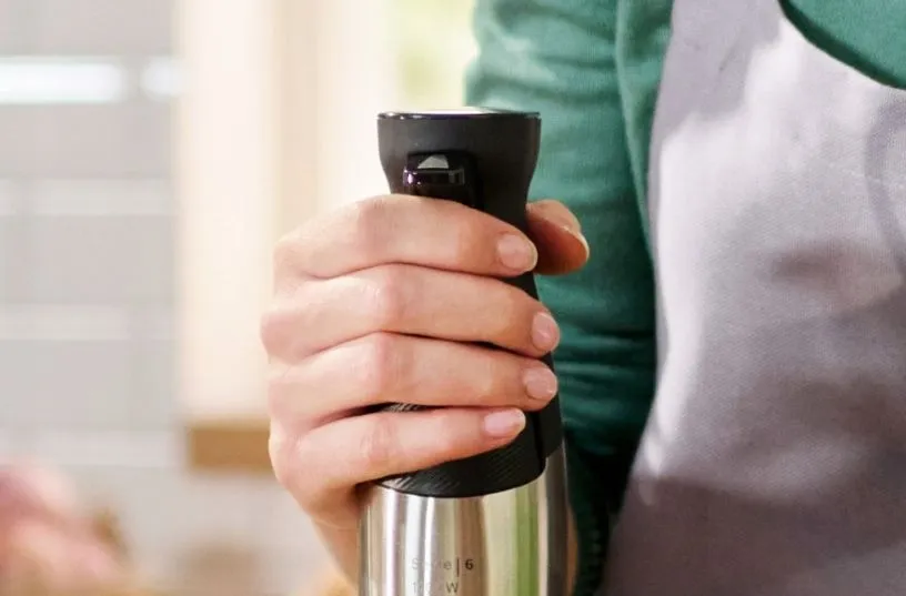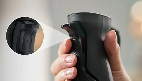 Управление блендером одной рукой стало еще удобнее: чем крепче хват, тем выше скорость. Большая кнопка регулировки скорости позволяет контролировать скорость с помощью нескольких пальцев или просто большого пальца.