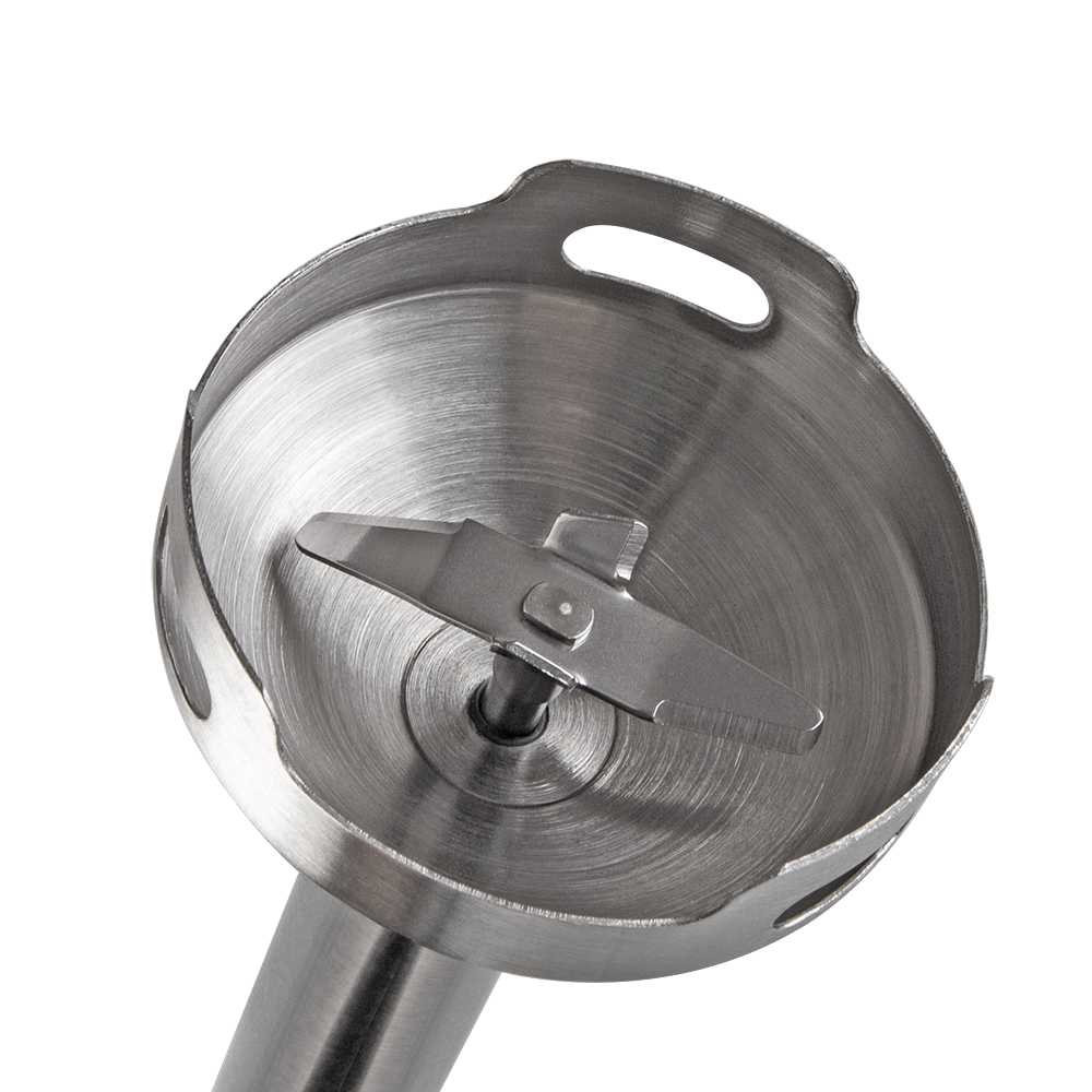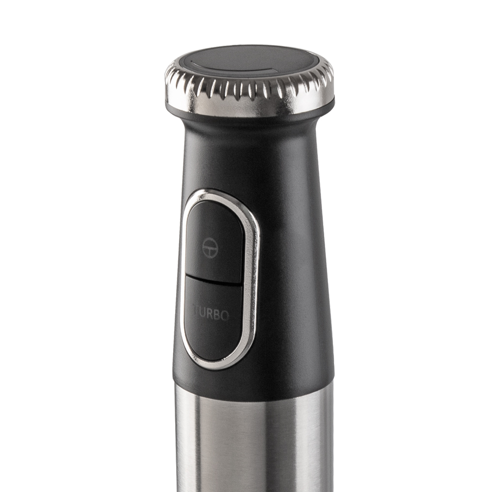 Особенности и дополнительные функции Специальная форма погружной насадки предотвращает попадание брызг на рабочую поверхность, Эргономичный дизайн, Низкий уровень шума и вибрации, Два режима скорости + плавная регулировка скорости, Материал ножей - нержавеющая сталь, Плавная регулировка скорости, LED подсветка, Снятие насадки одним легким движением