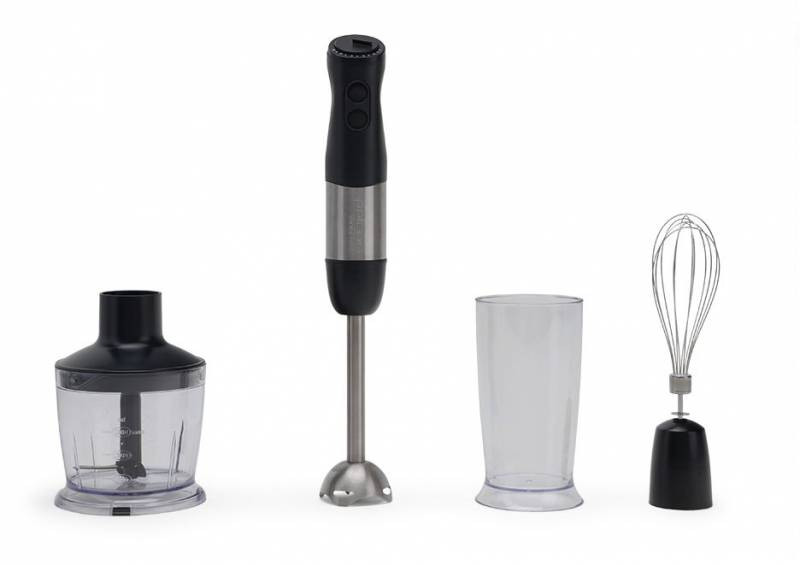 Особенности: 3 в 1: измельчитель, блендер, венчик. Низкий уровень шума. Мерный стакан на 600 мл. Защитная блокировка.