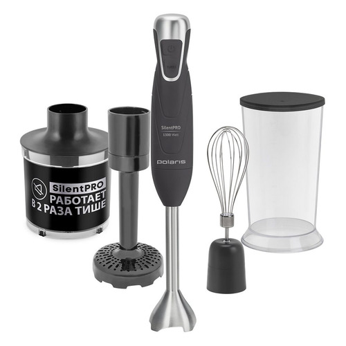 тип: погружной, мощность: 1300Вт, скоростей/режимов 2, турборежим, рабочая поверхность нержавеющая сталь, измельчитель, венчик для взбивания, защита от перегрузки, цвет: серый