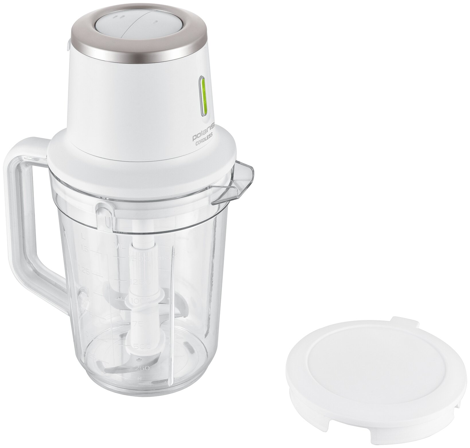 настольный блендер, до 15 минут автономной работы; от 30 до 60 циклов работы без подзарядки; время зарядки аккумулятора 5 часов; кувшин BPA Free объемом 1,5 литра; двухсторонняя шкала уровня наполнения; световая индикация работы и уровня зарядки; аккумулятор: Li-ion 2000 мАч, 11,1 В
